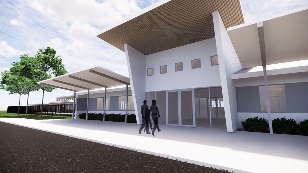 Stage 3 will see the addition of two more pods (each pod containing two classrooms and a reset room), and the final section of the Admin building completed.